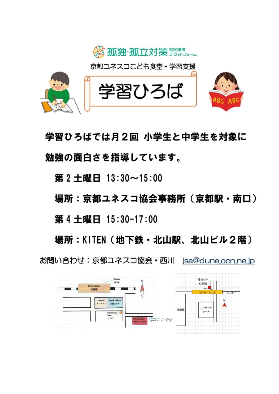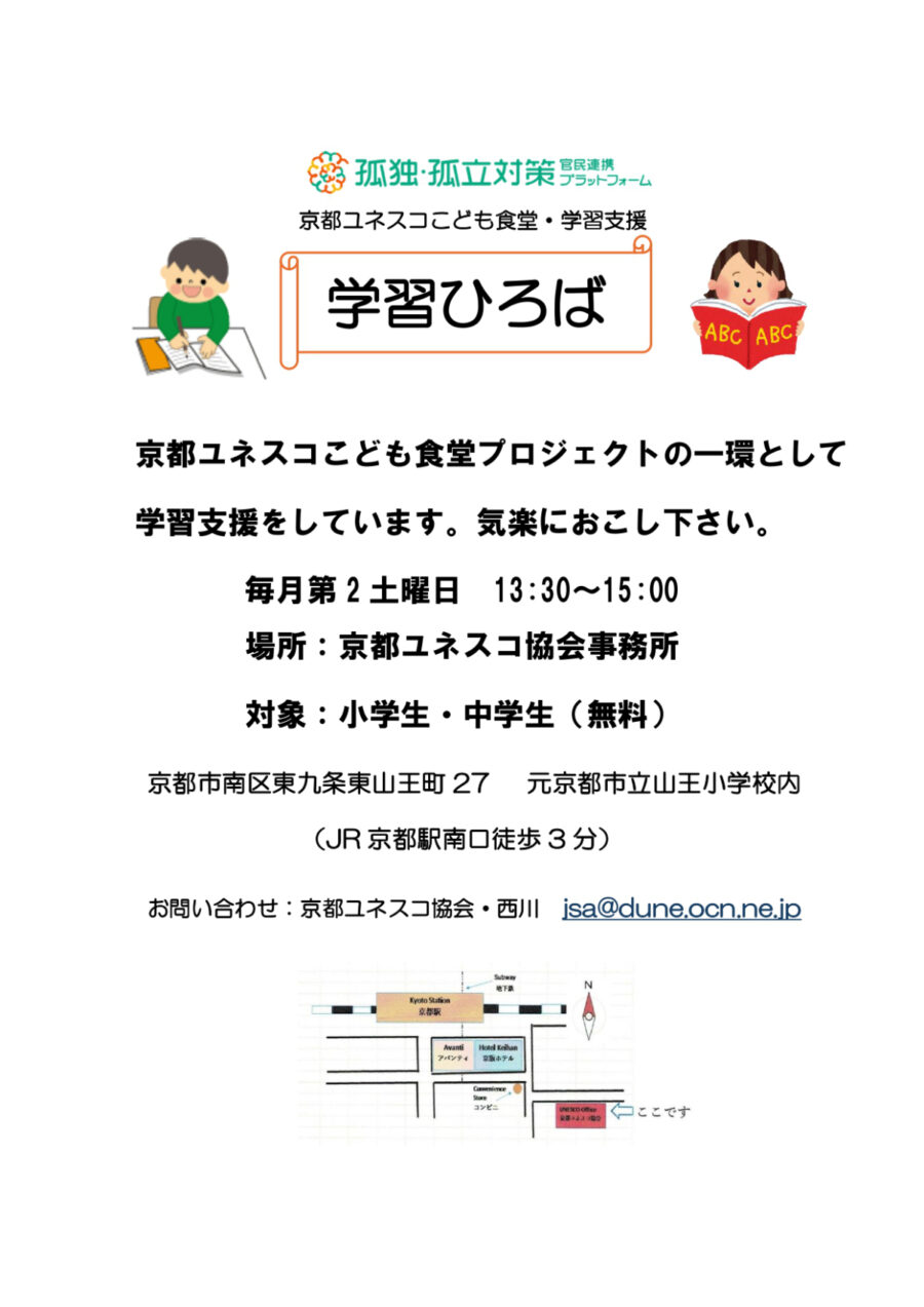 私たちの子ども食堂は京都ユネスコ協会の下でボランティアの人々によって運営されています。その活動は単にこども達への食事の提供だけでなく、こどもの居場所作りや外国にルーツを持つこども達との多文化共生など、幅広い「こども支援」を目指しています。